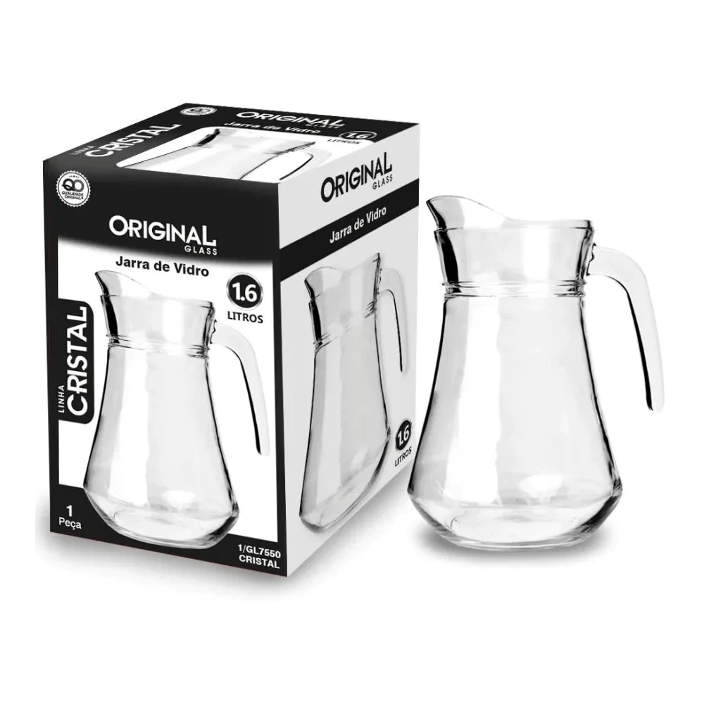 A Jarra de Vidro Crystal Original é perfeita para servir suas bebidas com elegância e praticidade. Com capacidade para 1,6 litros, ela é ideal para sucos, águas aromatizadas e refrescos em almoços, jantares ou ocasiões especiais. Fabricada em vidro cristalino de alta qualidade, possui alça anatômica que facilita o manuseio e um bico direcionador que evita respingos.